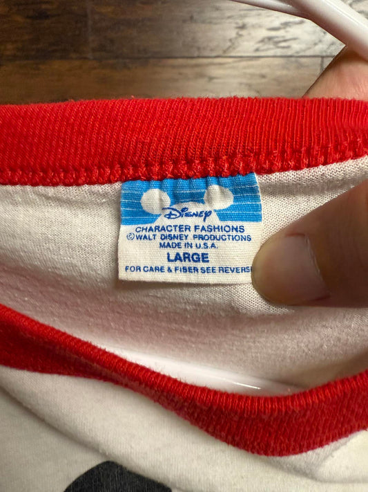 Vintage 80s Mickey Mouse Ringer Tee Walt Disney World -L