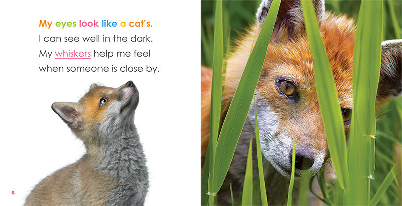 A baby fox narrates the story of its life, describing how physical features, diet, habitat and familial relationships play a role in its growth and development.