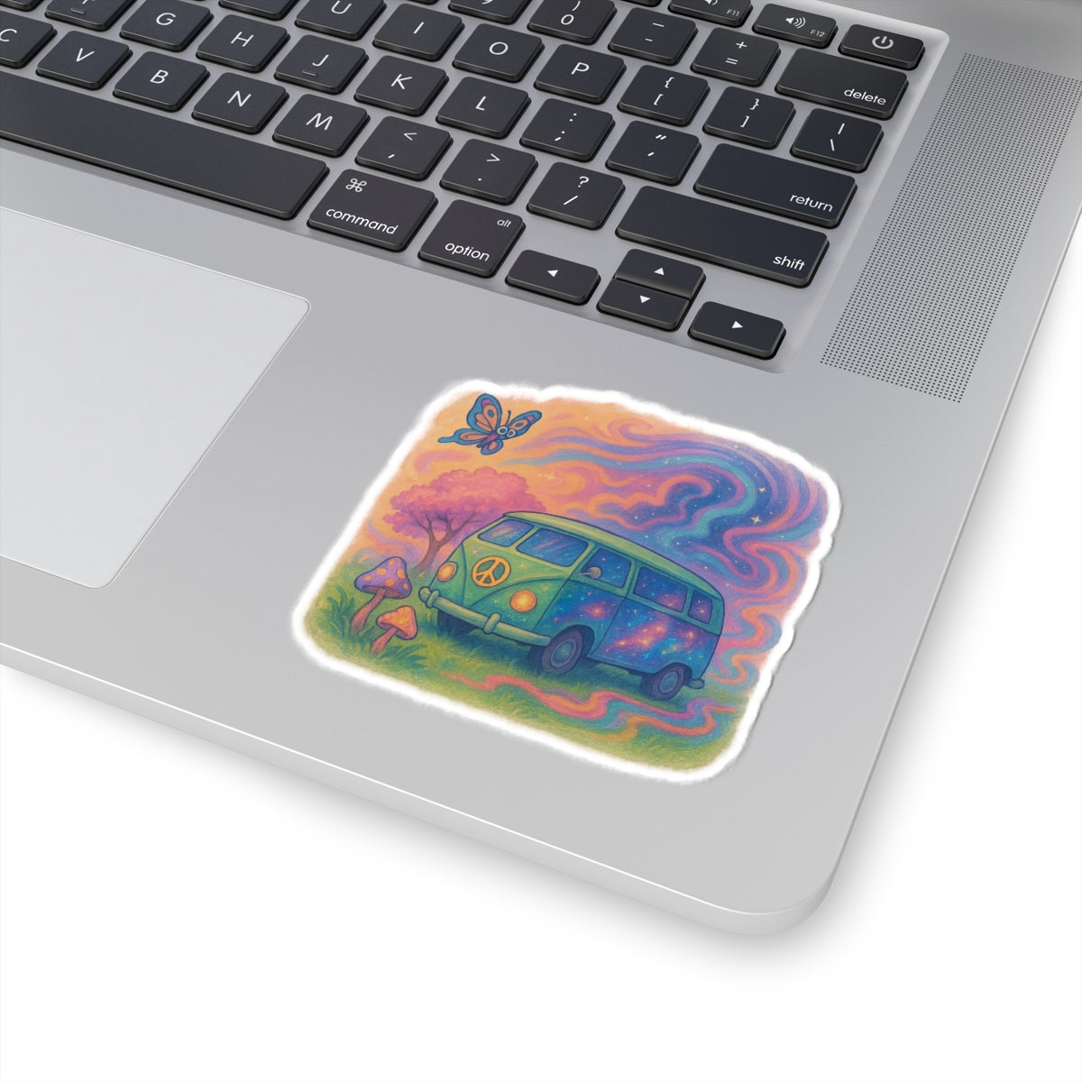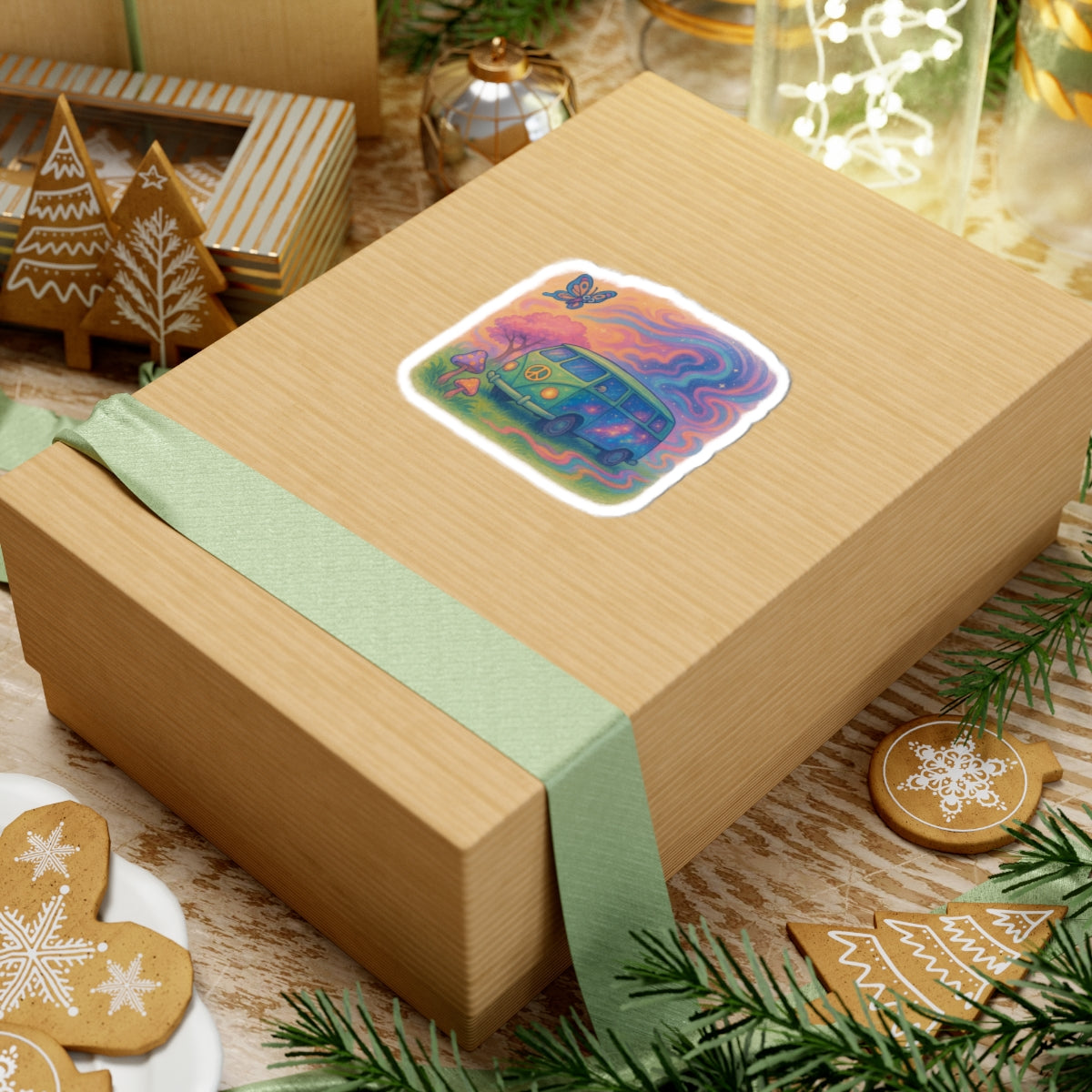 Hop on the ultimate good-vibes ride! Each Hippie Bus kiss-cut sticker is bursting with retro rainbow magic and road-trip soul. Collect all four designs and let your stickers tell the story of endless adventures and freedom on wheels.