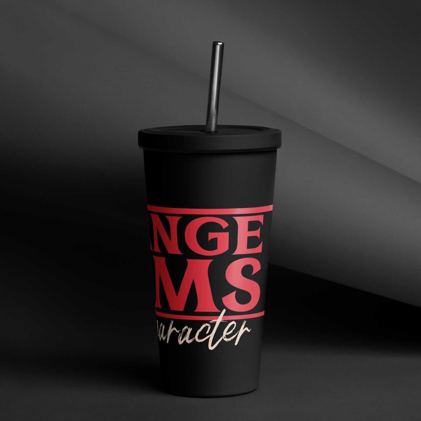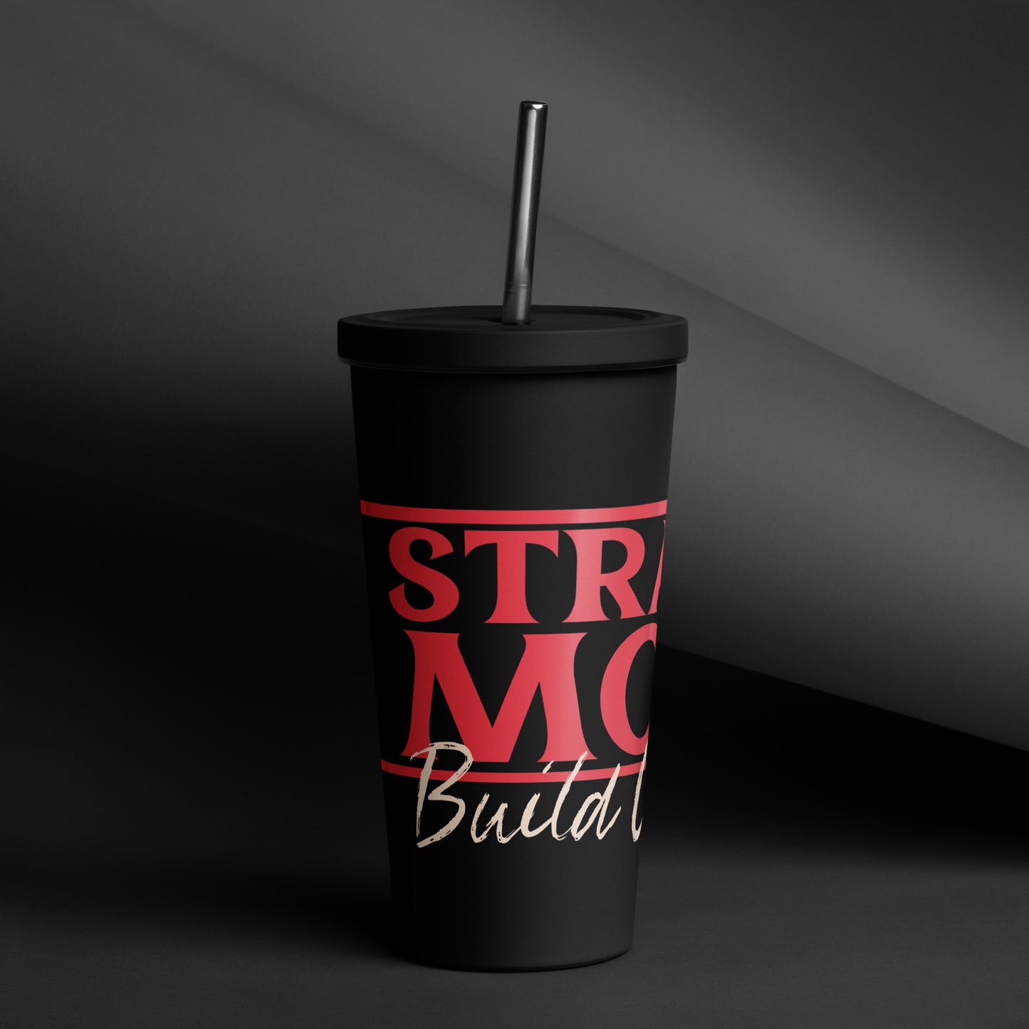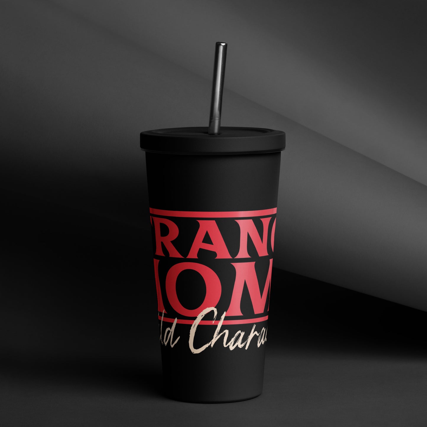 Strange Moms Build Character Insulated tumbler with a straw