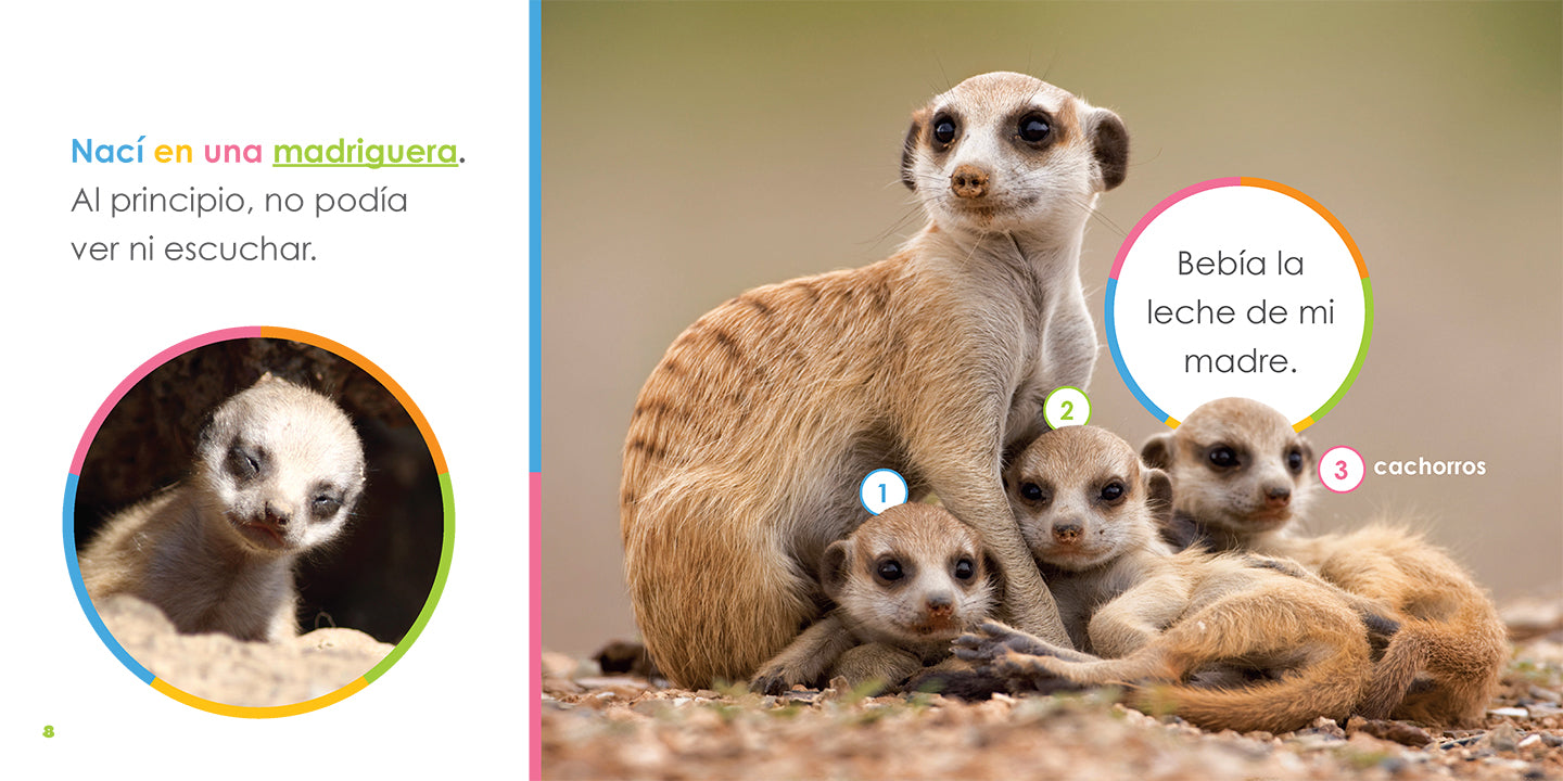 Celebrating the life, growth, and development of baby animals, El principio de los narrates the tale of growing up in the wild. This series—now in Spanish as well as English—employs simple language and a unique first-person perspective to introduce foundational biological concepts as it follows the adorable animal through the start of its young life. The straightforward text and large photos of the animal in its natural environment will both entertain and enlighten as readers learn how the animal’s physical features, diet, habitat, and familial relationships play a role in its growth and development.
