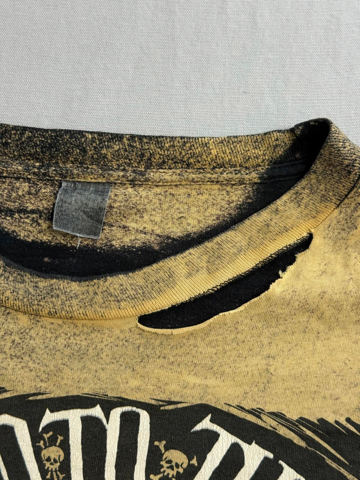 Vintage 80s Biker Skull T-shirt Born Bad to Tha Bone Trashed